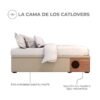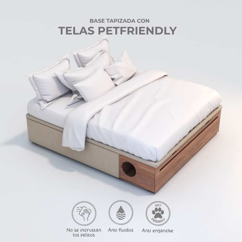 Acolchada y tapizada en tela petfriendly, suave al tacto, antienganche (para que las garritas no se incrusten en la tela) y antifluido, lo que ayuda a mantener la cama seca, limpia y libre de humedad o posibles hongos.
