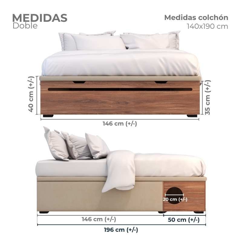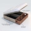 Está equipada con brazos hidráulicos que mantienen la tapa abierta con suavidad ¡incluso con el colchón puesto! Además, estos brazos hacen que el cierre de la cama sea ligero, seguro y sin esfuerzo.