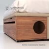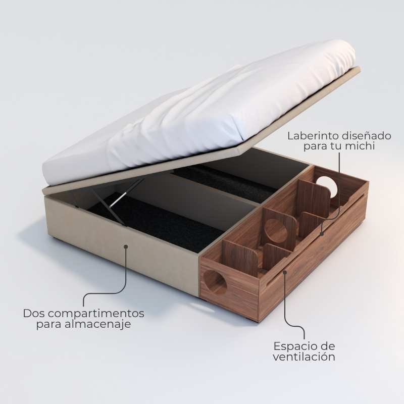 En su interior, una sorpresa especial para los amantes de los gatos: una sección tipo laberinto fabricada en madera melamínica, con dos entradas laterales de 20 cm de diámetro y una ventanita horizontal que permite la ventilación y, lo más importante, ¡ver a tu gatito mientras explora o descansa!