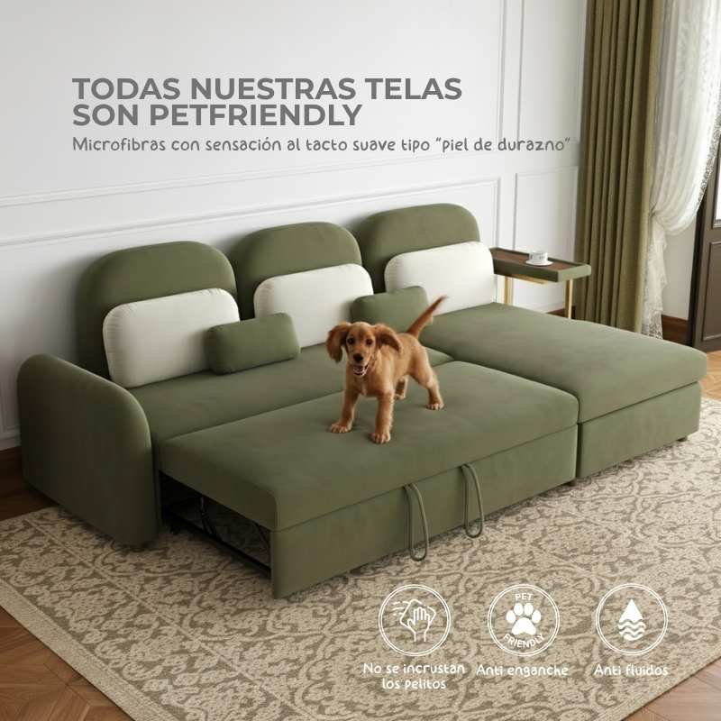 Tienes la seguridad de que cualquier tela que escojas es petfriendly: una microfibra suavecita al tacto que ayuda a que las garritas de nuestros peluditos (sea gato o perro) no se incrusten fácil. Además, tienen un sistema antifluido que te permite reaccionar si tienes accidentes con líquidos.
